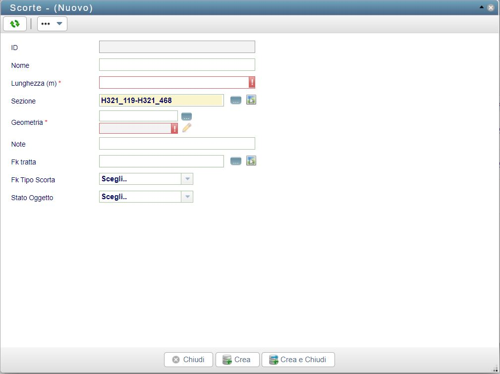 Selezionando il tasto "Nuovo", si apre la tabella della nuova scorta, in cui inserire le informazioni richieste.