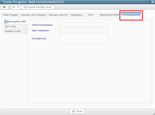scheda di dettaglio della tratta, è possibile accedere al tab "Cronoprogramma" , in cui è possibile: