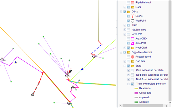 Il PMO, accedendo con le sue credenziali, può visualizzare quali oggetti sono stati realizzati mediante la visualizzazione secondo lo stato, in basso a destra nella scheda dei Layer, o mediante i dettagli delle liste.