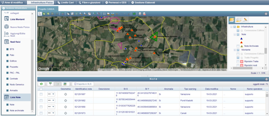 è possibile consultare il menu "Lista Note" in cui sono visualizzate tutte le note presenti nel progetto.