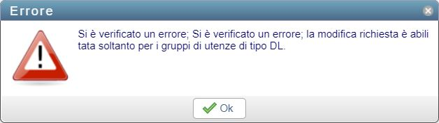 I campi “Gestione Variazione” e "Categoria Variazione Complessa" possono essere valorizzati solo dal DL, nel caso in cui una diversa utenza cerchi di compilare tale campo, verrà restituito il seguente messaggio di errore: